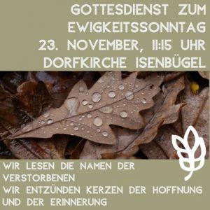 An jedem Ewigkeitssonntag ( Totensonntag ) gedenken wir in der Dorfkirche Isenbügel in einem stimmungsvollen Gottesdienst den Verstorbenen der Kirchengemeinde Heiligenhaus in abgelaufenen Kirchenjahr.